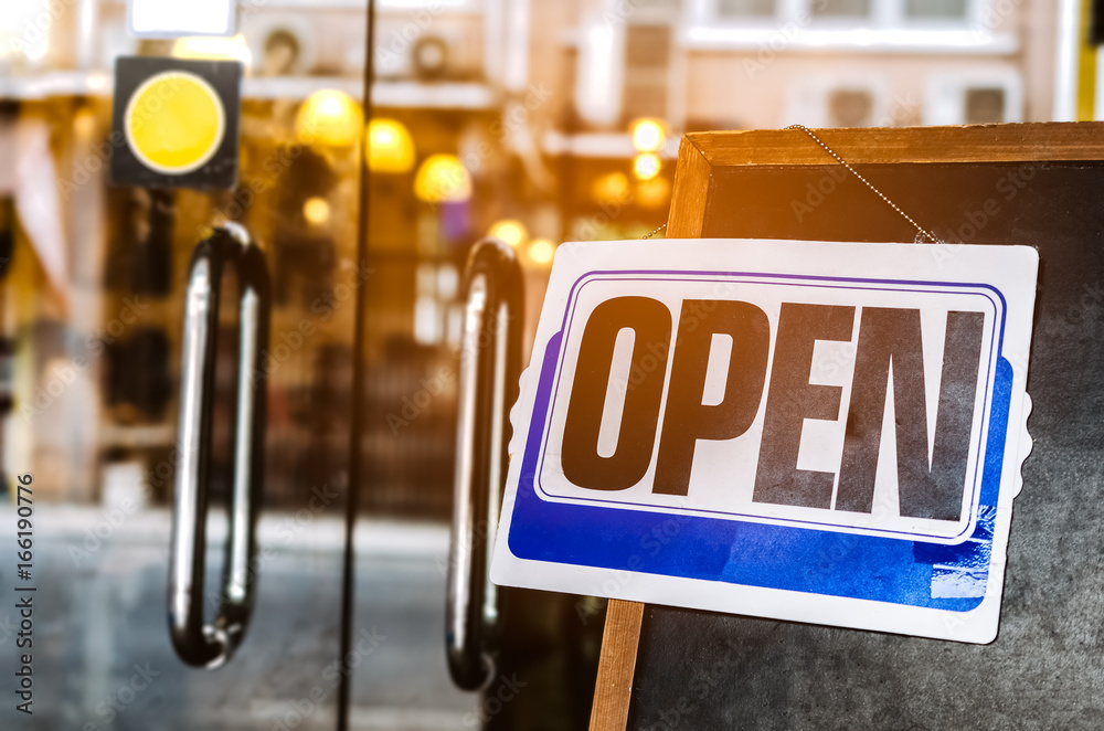 Open Sign Broad Hanging In Front Of Glass Door Coffee Shop Stock Photo Adobe Stock